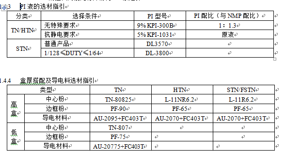 LCD液晶顯示屏生產工廠前段中間粉,PI的選材